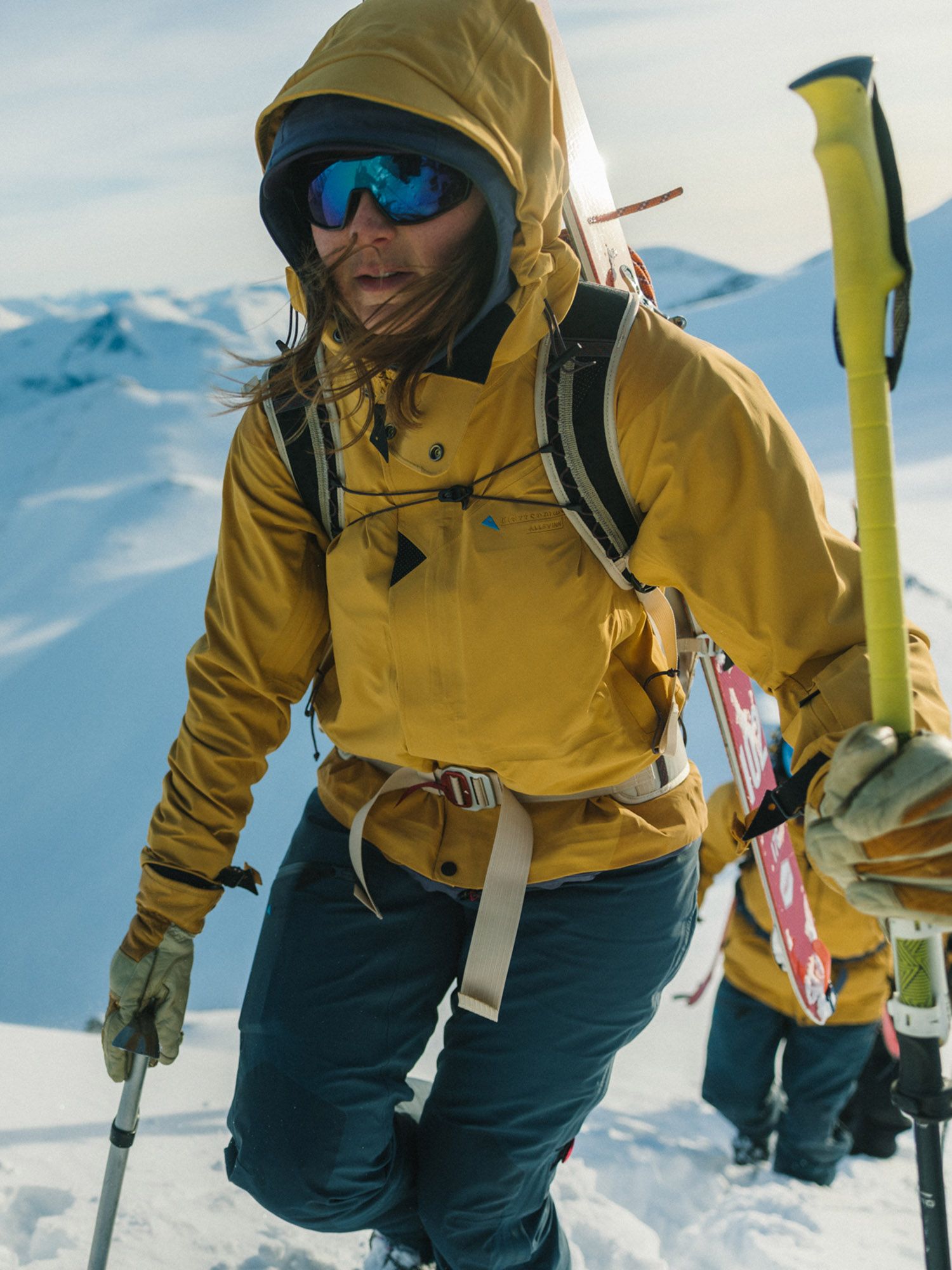 Allsvinn is a waterproof, soft and durable hard shell jacket for ski mountaineering.